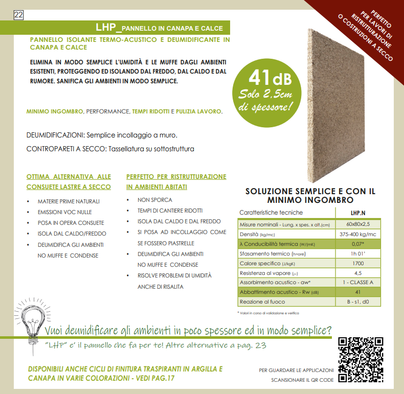 Pannello isolante e deumidificante in canapa e calce, elimina in modo semplice umidità e muffe dagli ambienti esistenti, proteggendo ed isolando da freddo e caldo. Sanifica gli ambienti in modo semplice.
